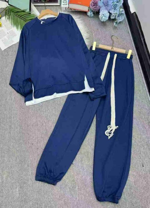 男女同款圆领假两件长袖运动酷帅束脚套裤,独立包装,码数S-L(码数偏大),图五色为主,数量130,货号126#60