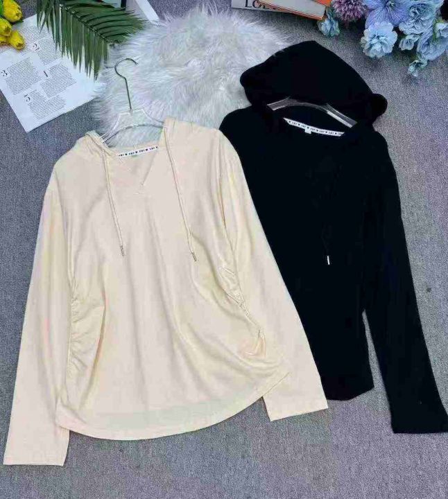 连帽卫衣修身显瘦正肩T恤小众气质长袖收腰上衣,独立包装,码数M-3XL,数量352件,分货加1,货号125#58
