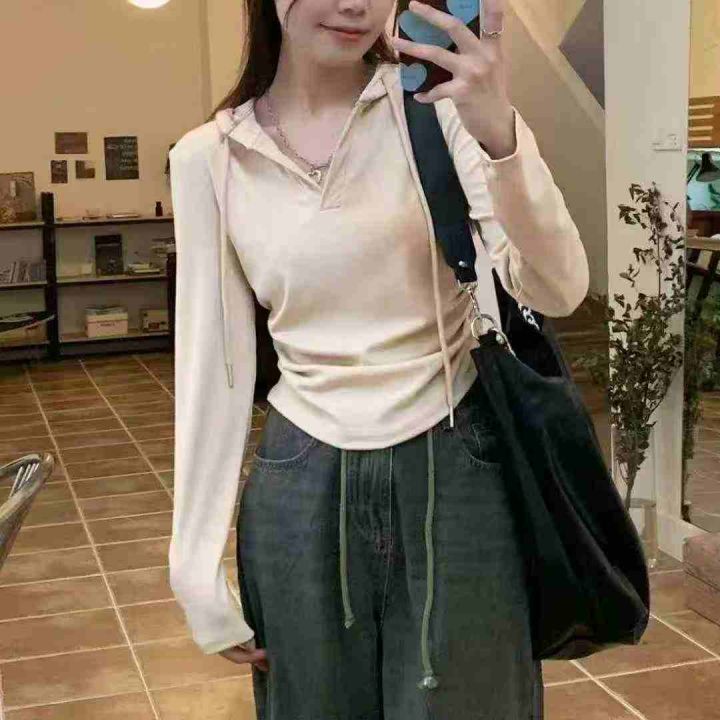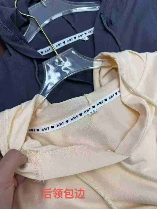 全清价6.9连帽卫衣修身显瘦正肩T恤小众气质长袖收腰上...