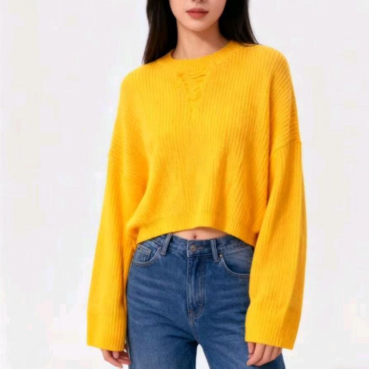 春秋新款网红设计感小众不规则洋气弹力修身显瘦坑条包芯纱套头毛衣,独立包...