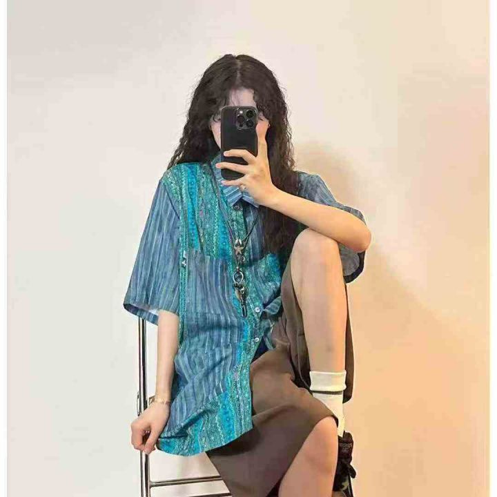 ① 夏季新款美式复古男女同款拼色设计短袖衬衣!版型宽松,整款三色,独立包装,码数M-3XL,数量400件左右,全清6.8元