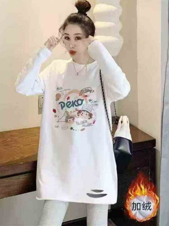 圆领/半高领德绒打底衫女新款内搭宽松白色印花中长款...
