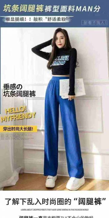 春夏季新款网红复古克莱因蓝直筒阔腿休闲裤,独立包装,码数M-L码 , 260件左右,全清5.9元超低价秒杀!