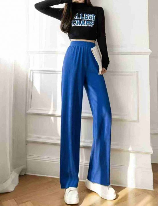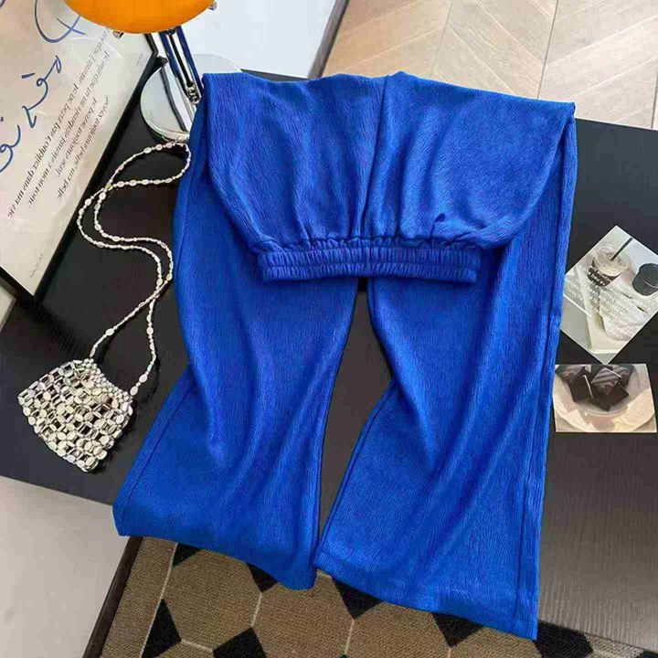 春夏季新款网红复古克莱因蓝直筒阔腿休闲裤,独立包装...