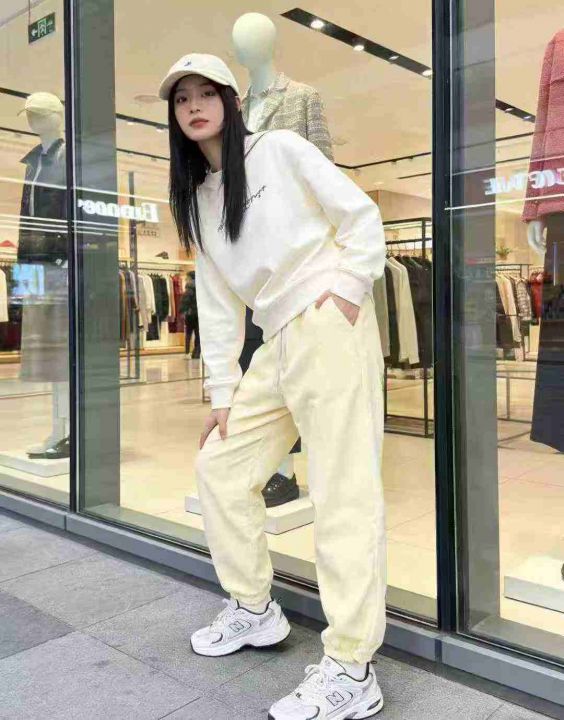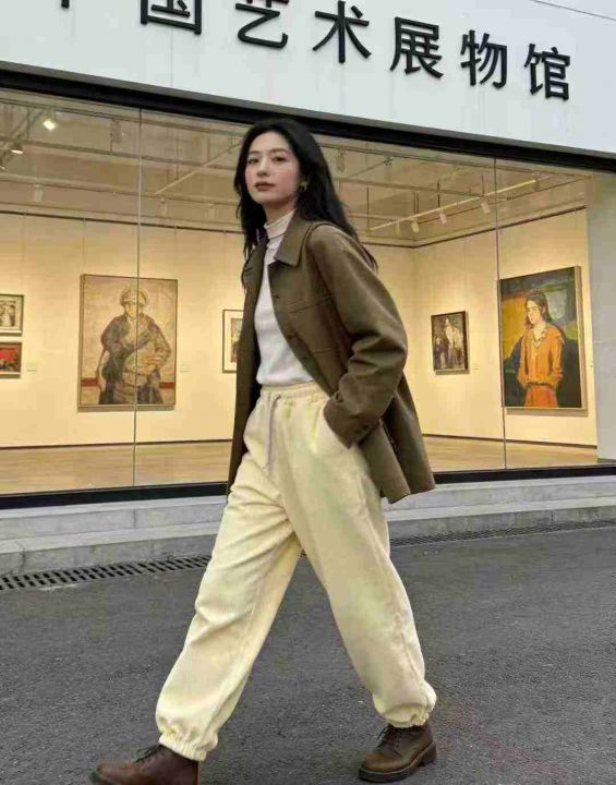 灯芯绒裤子女春秋冬季加绒阔腿高腰显瘦休闲抽绳运动裤...