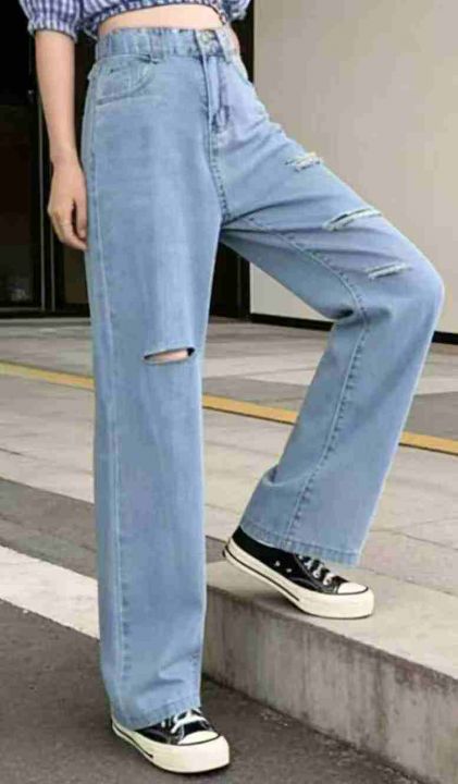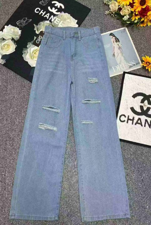 春夏季新款品牌原单宽松半松紧腰破洞设计款直筒阔腿牛仔裤,独立包装带吊牌,图片款,码数26--36码双码一首码,780件,全清9.9元超低价秒杀!分货加一!