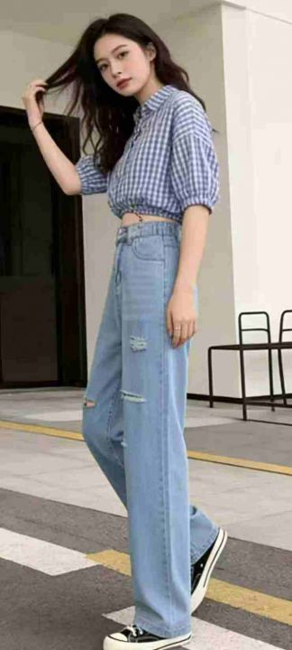 春夏季新款品牌原单宽松半松紧腰破洞设计款直筒阔腿牛仔裤,独立包装带吊牌,图片款,码数26--36码双码一首码,780件,全清9.9元超低价秒杀!分货加一!
