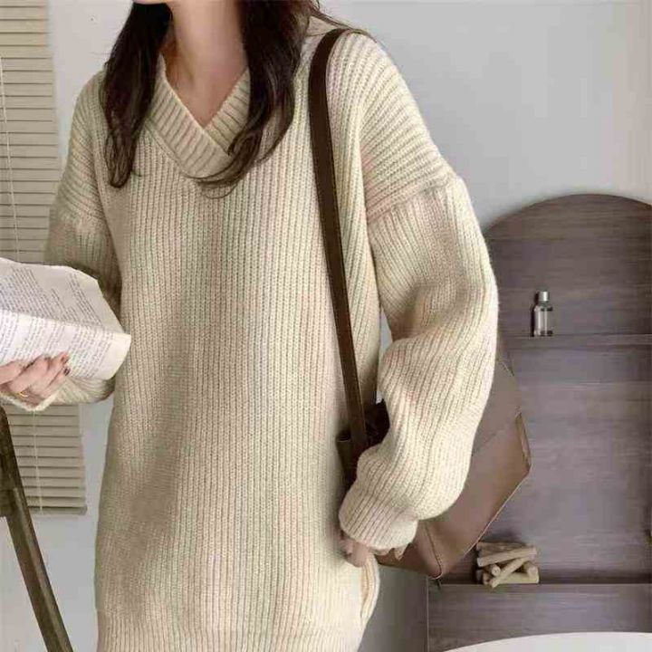 91件气质v领套头毛衣女慵懒针织衫加厚宽松外穿设计感中长款上衣,均码,厚实保暖亲肤高弹力,独立包装,福利秒杀价5.8 不分货