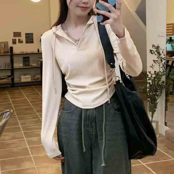 全清价6.9连帽卫衣修身显瘦正肩T恤小众气质长袖收腰上...