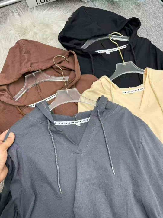 连帽卫衣修身显瘦正肩T恤小众气质长袖收腰上衣,独立包装,码数M-3XL,数量352件,分货加1,货号125#58