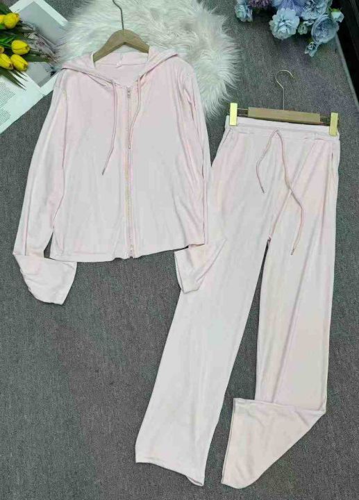 连帽拉链卫衣外套女时尚减龄两件套纯色运动套装,独立包装,码数1-6,粉色款为主,数量137套,货号126#59
