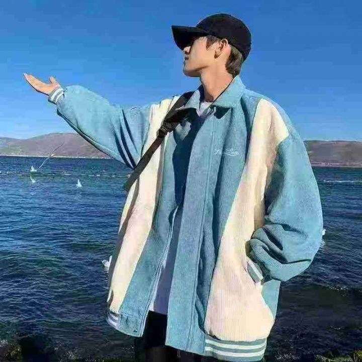 灯芯绒外套男春秋季美式vintage潮牌复古宽松拼接撞色翻领夹克衫,独立包装...