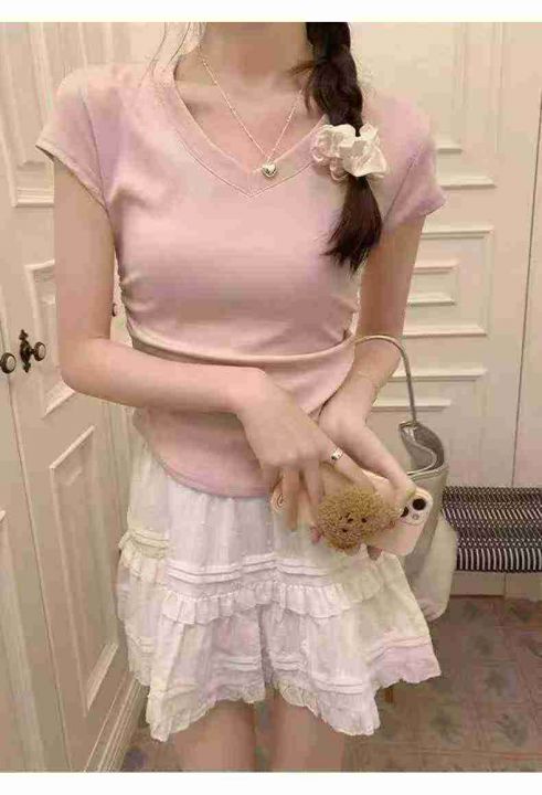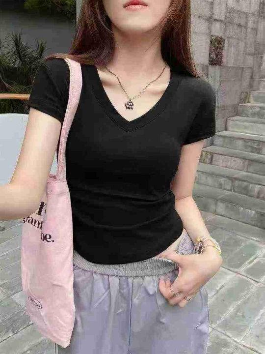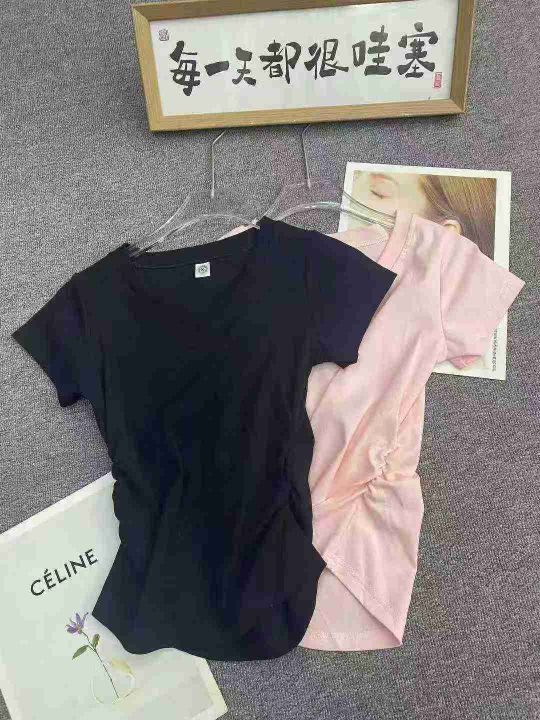 正肩棉质靓妹短袖250件6.9,面料有弹力,手感褶皱收腰...