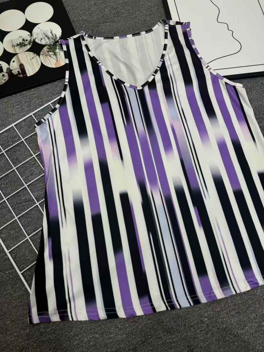 复古条纹背心吊带宽松显瘦V领宽松通勤夏季穿着舒适女士印花仙气,独立拉链...