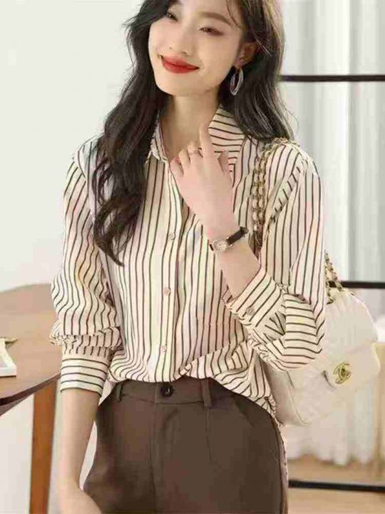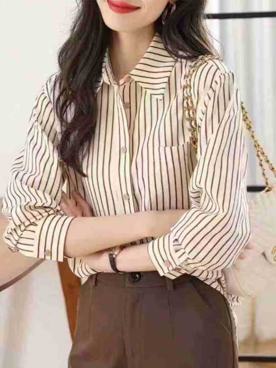 条纹衬衫女士装早春秋2026年新款爆款时尚小个子洋气上衣长袖衬衣,1到4码,独立包装,487件,独立包装,货品干净,7.8清,分货加1