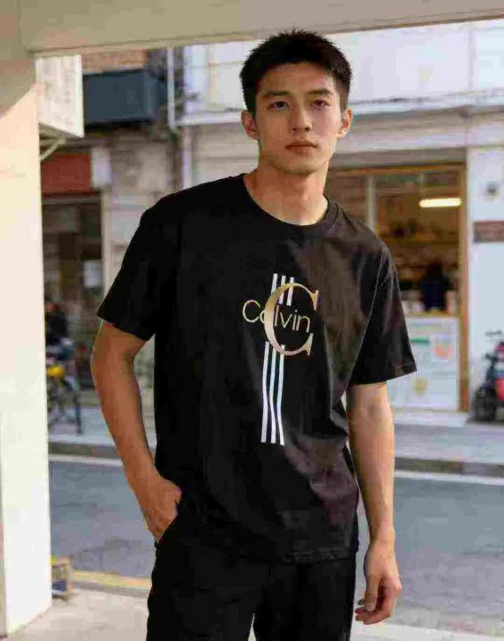 全清价6.8400件\'夏季潮牌Calvin字母印花短袖T恤男三条杠宽松圆领半袖ins潮...