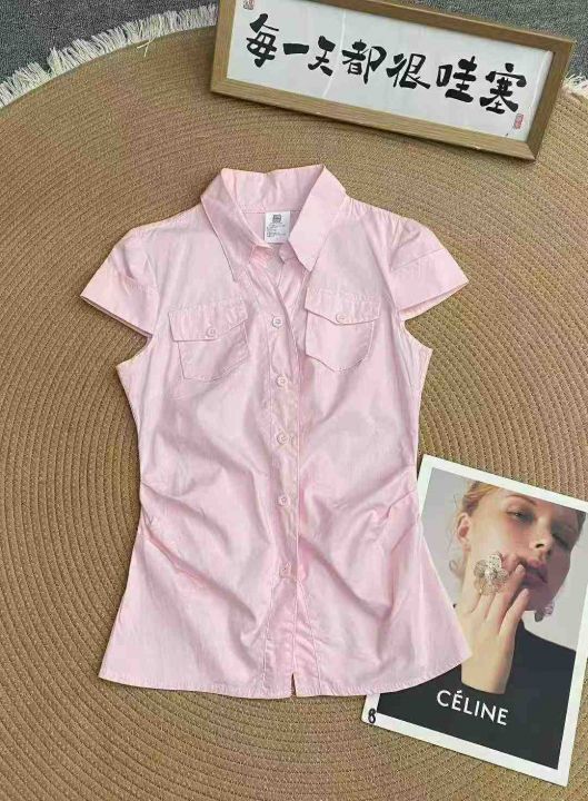 韩系设计感短袖衬衫276件8.5,褶皱收腰,后领包边,码...