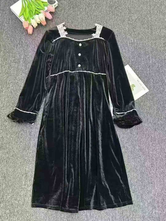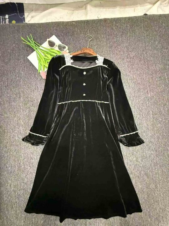 ️39件,法式丝绒连衣裙赫本秋冬新款复古过膝长裙长袖蕾丝接收显瘦气质,独立包装,全清8.8