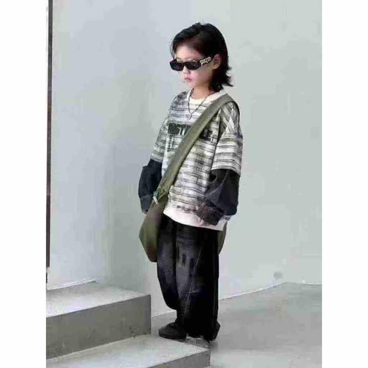 3.9清电商仓回收404件美式扎染假两件潮儿童卫衣,码数100-150码。面料柔软...