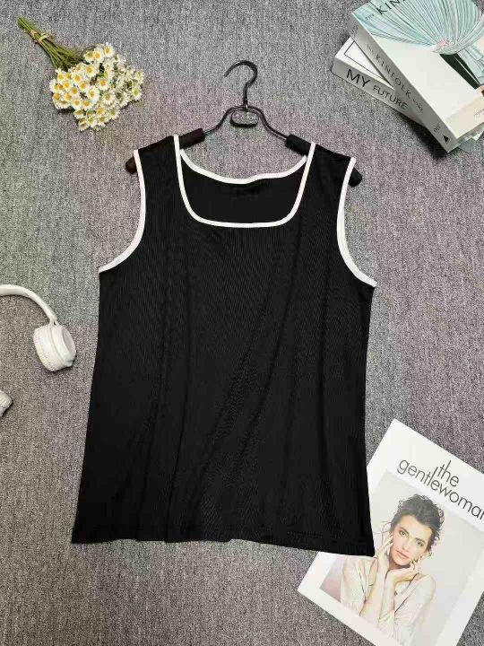 大码辣妹风无袖法式方领背心吊带小衫,整款两色,高弹...