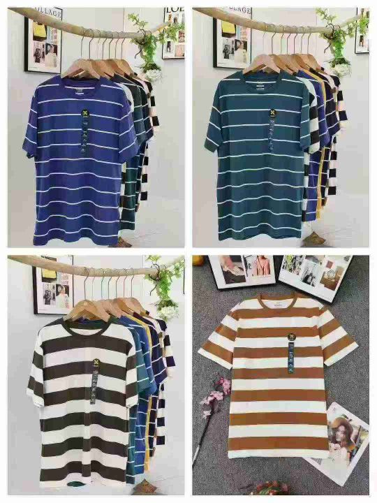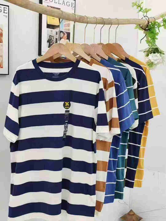 圆领条纹纯棉短袖T恤,清9.8码数M一3XL,数量610件左...