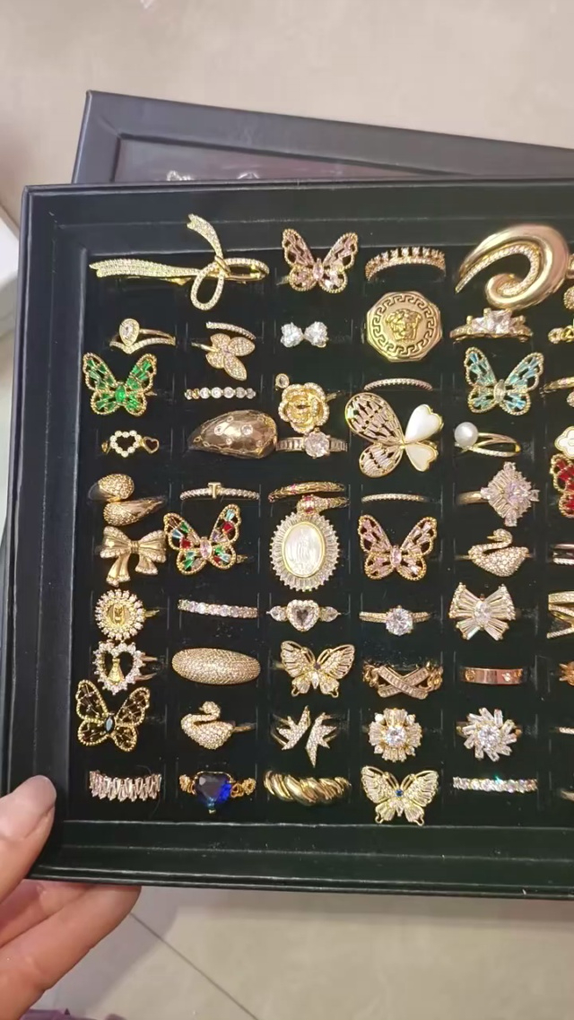 铜镀金镶锆石重工戒指,就3盒,对口的私聊 2818