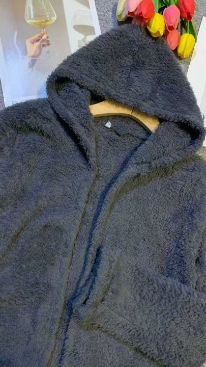 上新全清:2.8一件慵懒风双面珊瑚绒男女同款开衫连帽...