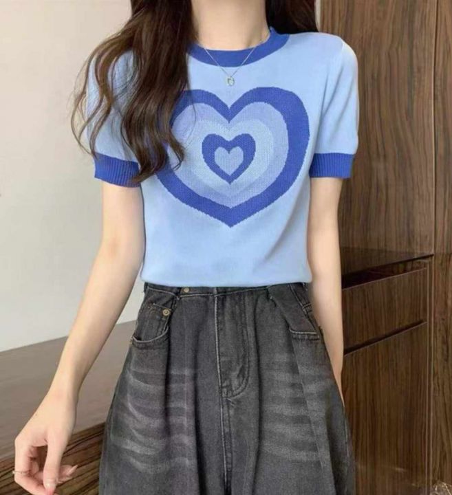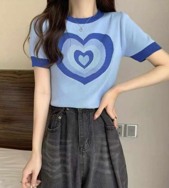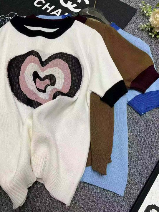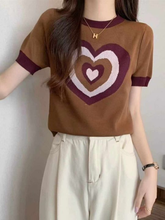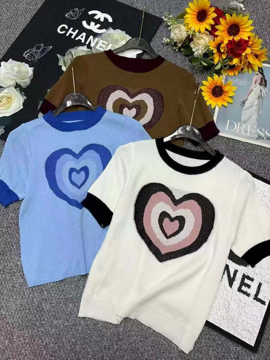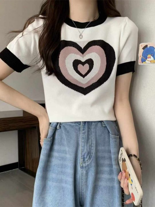 捡漏款,夏季新款正肩甜酷撞色设计感爱心提花弹力修身显瘦针织短袖,独立包装,均码面料柔软舒适弹力大,80件,全清5.9元超低价秒杀!