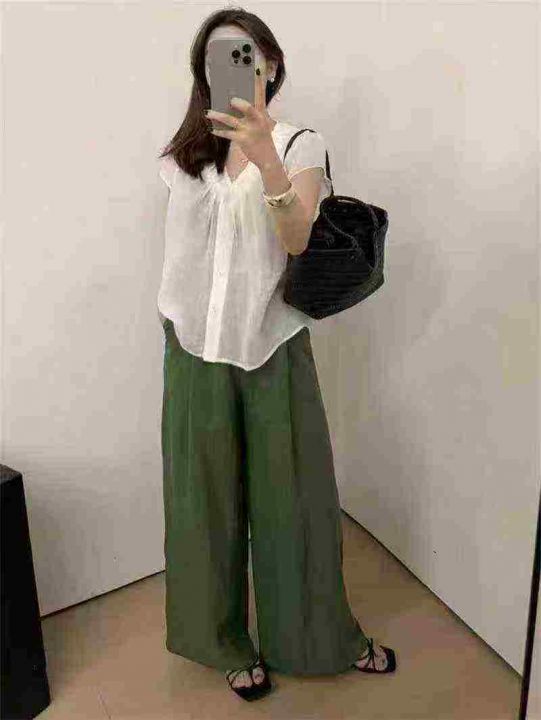 春季新款棉麻气质阔腿宽松直筒休闲裤 三个图片款