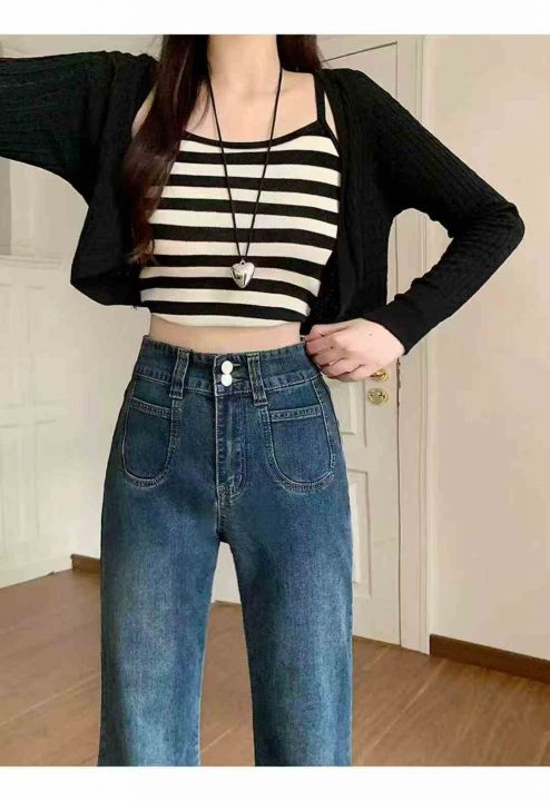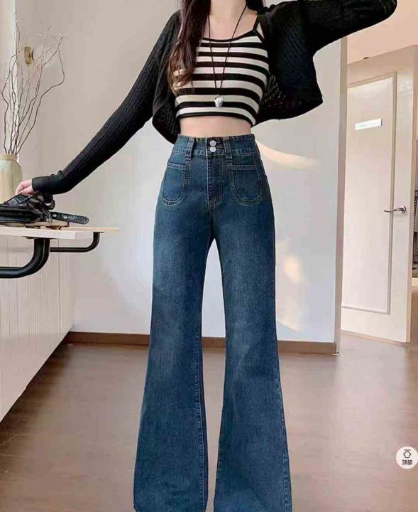 新款胖mm百搭显瘦遮胯微喇牛仔裤129件,独立包装带吊...