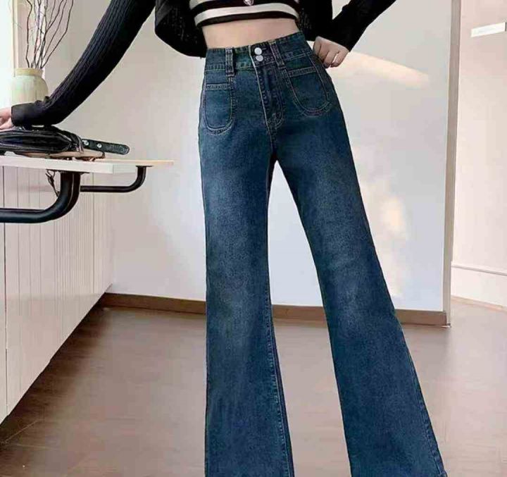 新款胖mm百搭显瘦遮胯微喇牛仔裤129件,独立包装带吊...