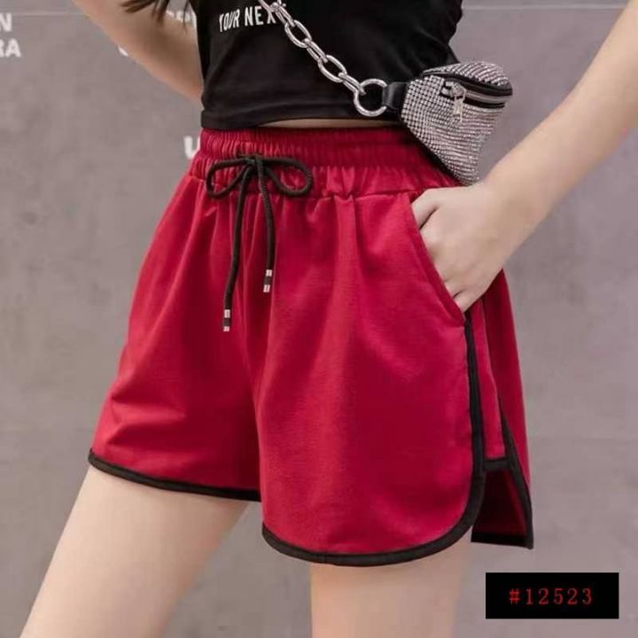 [月亮]:美式复古撞色杆条休闲辣妹棉质短裤