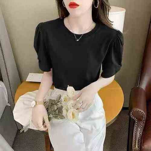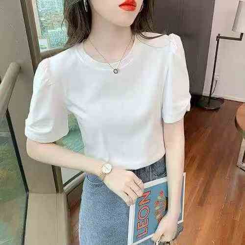 171件,冰丝螺纹短袖t恤女夏季2024新款女装圆领体恤法式泡泡袖洋气上衣,独立包装,码数M-2XL,全清5.8元,分货➕0.5