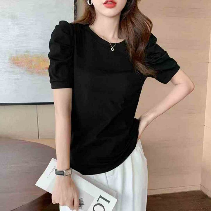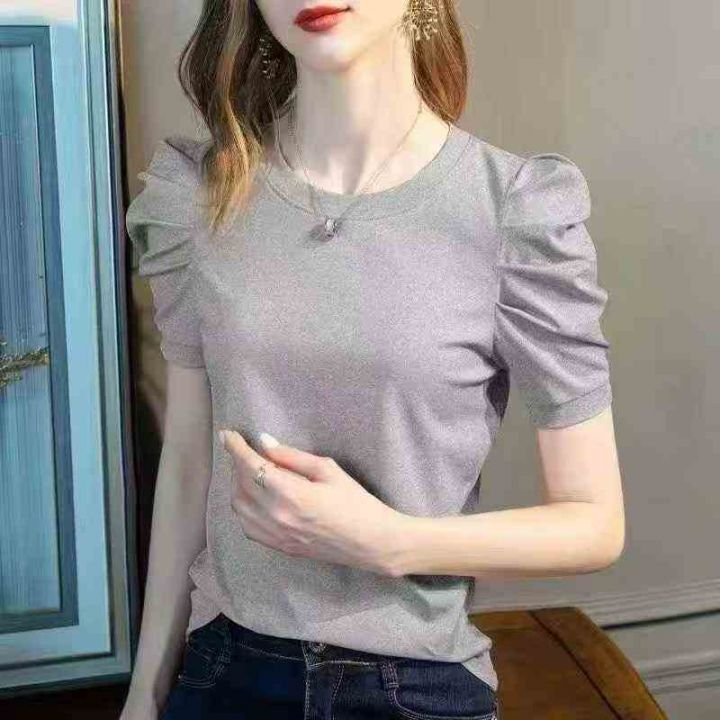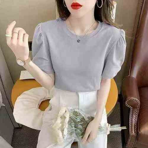 171件,冰丝螺纹短袖t恤女夏季2024新款女装圆领体恤法式泡泡袖洋气上衣,独立包装,码数M-2XL,全清5.8元,分货➕0.5