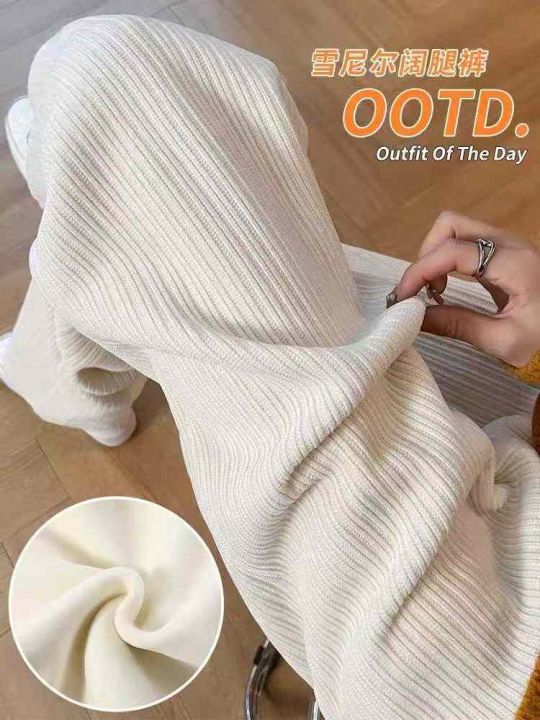 ☕️雪尼尔阔腿裤新款高腰垂感窄版显瘦直筒加绒休闲裤...