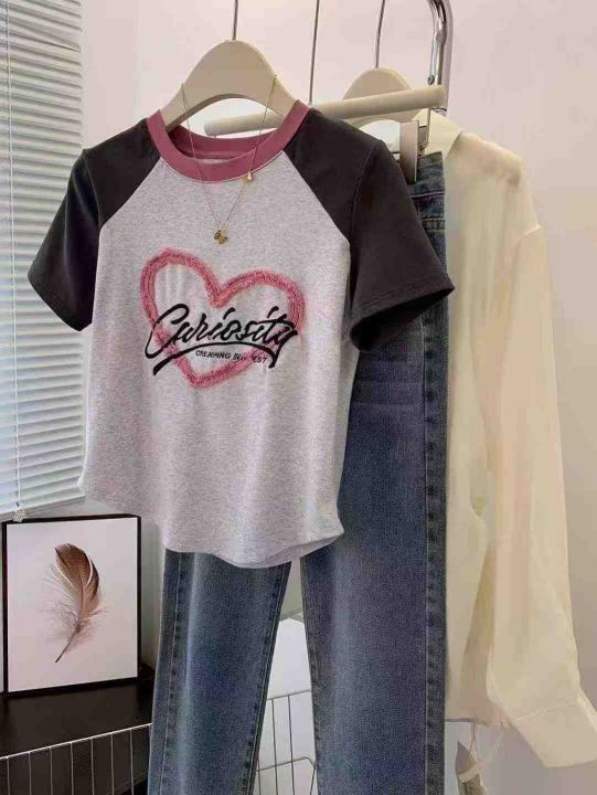 [發]撞色爱心短款插肩辣妹体恤260件左右