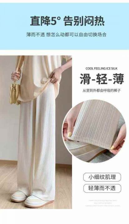 264条.冰丝阔腿裤女夏季薄款米白色高腰垂感休闲直筒裤宽松凉感运动裤子,独立包装,码数:M-XL,全清8.8元,分货➕0.5