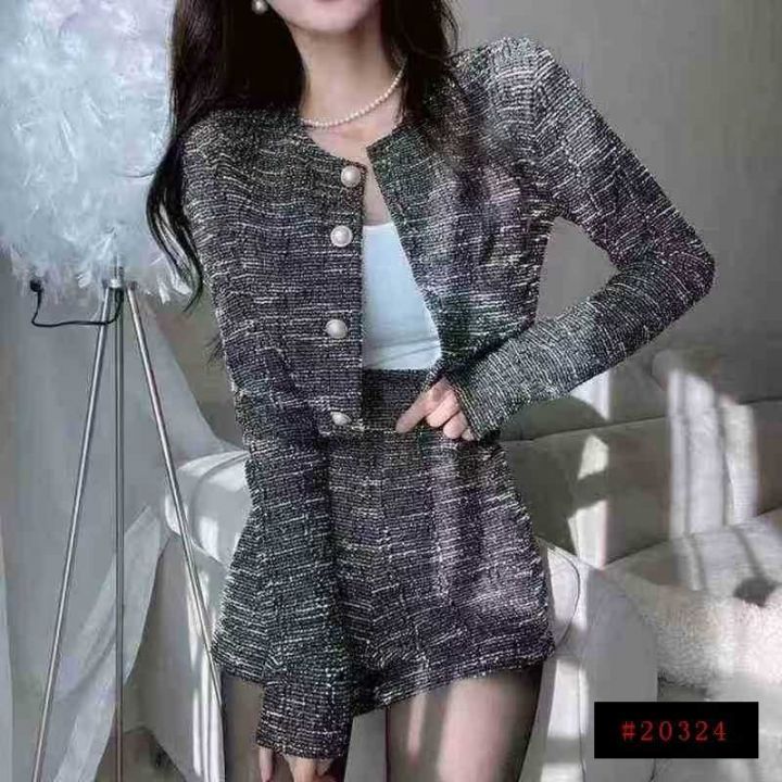 16.8清170套女装小香风外套短裤 两件套 复古圆领长袖格纹小香风粗花呢外套...
