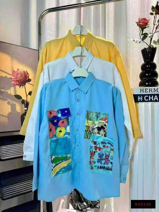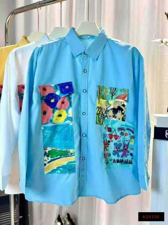风油画可爱别致花朵小众设计感工装款长袖衬衫上衣 独立包装 码数1-4码 数量200件 全清6.5@_@