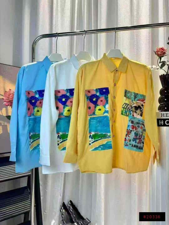 风油画可爱别致花朵小众设计感工装款长袖衬衫上衣 独立包装 码数1-4码 数量200件 全清6.5@_@