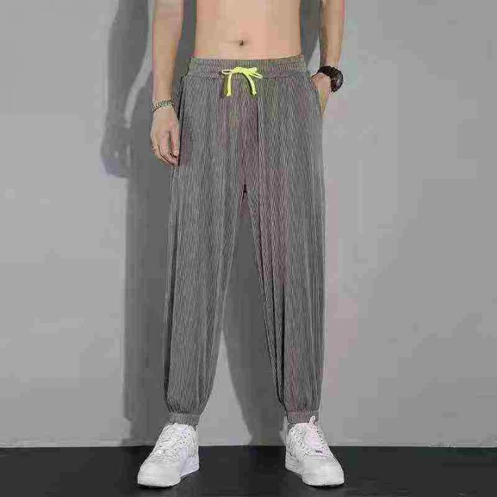 全清6.5元,6538条\'裤子夏季男休闲薄款韩版ins潮牌冰丝条纹运动大码弹力宽松哈伦裤\'分货➕0.5