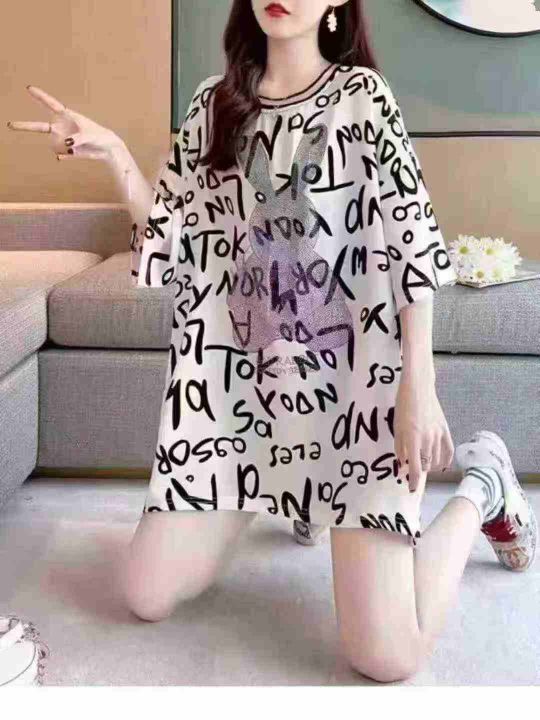 全清价6.5时尚烫钻短袖t恤女中长款夏韩版宽松ins潮露背上衣,独立包装,码...