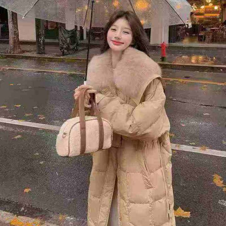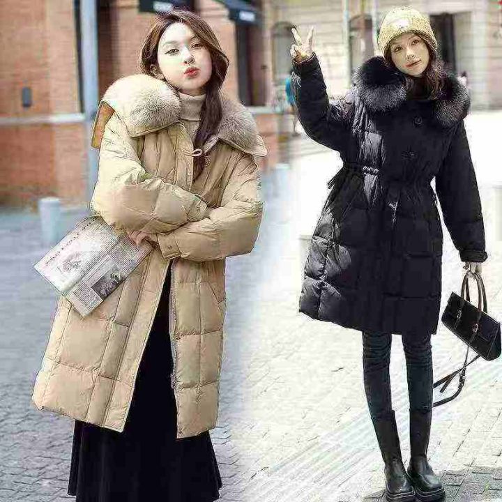 韩系高级感大毛领大长款棉服,数量495件,码数M-2XL,单款3色,黑色,白色,卡其色,独立包装吊牌,分货50件一份➕1元