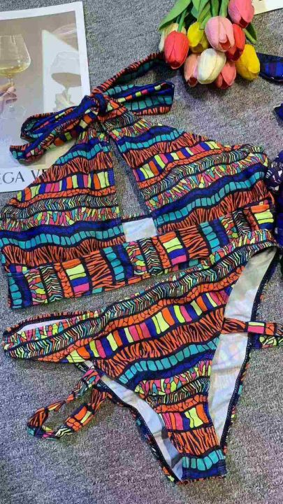 上新全清:2.8一件复古图腾镂空露背性感泳衣比基尼,[...