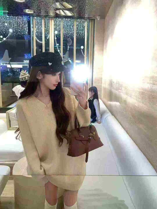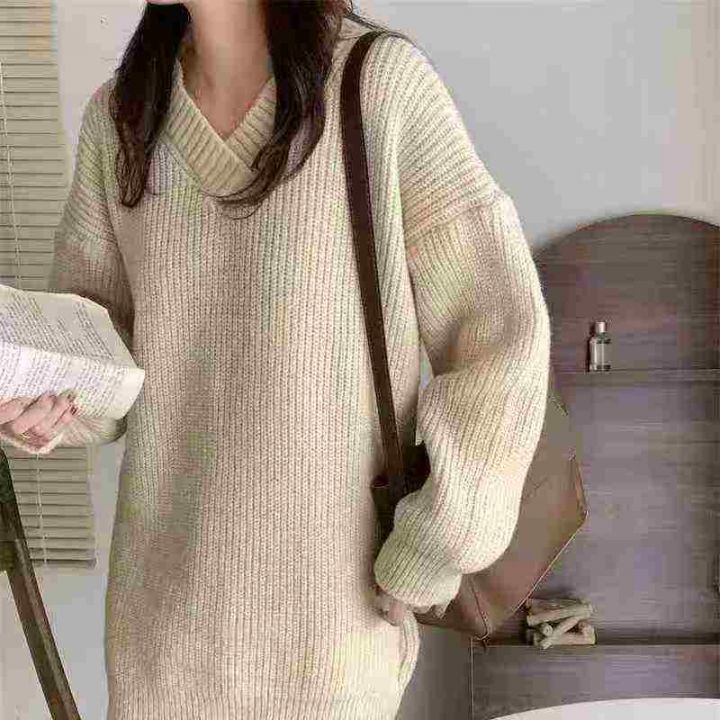 91件气质v领套头毛衣女慵懒针织衫加厚宽松外穿设计感中长款上衣,均码,厚实保暖亲肤高弹力,独立包装,福利秒杀价5.8 不分货