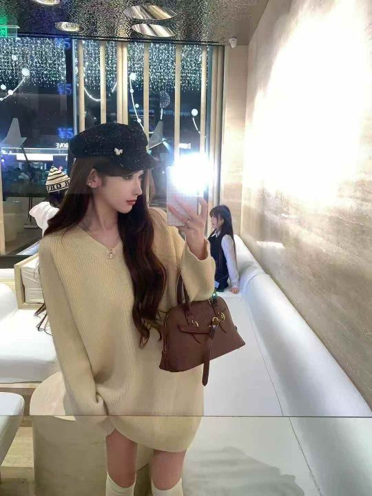 91件气质v领套头毛衣女慵懒针织衫加厚宽松外穿设计感中长款上衣,均码,厚实保暖亲肤高弹力,独立包装,福利秒杀价5.8 不分货