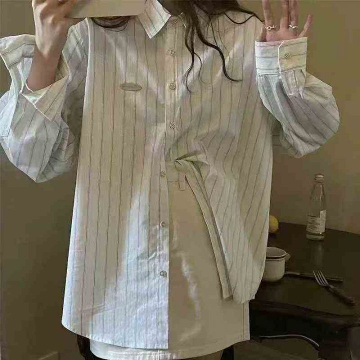 春秋新款叠穿大码宽松休闲显瘦长袖衬衫女法式衬衣设计感小众条纹上衣 独立包装 码数1-4码 数量382件 全清5.9