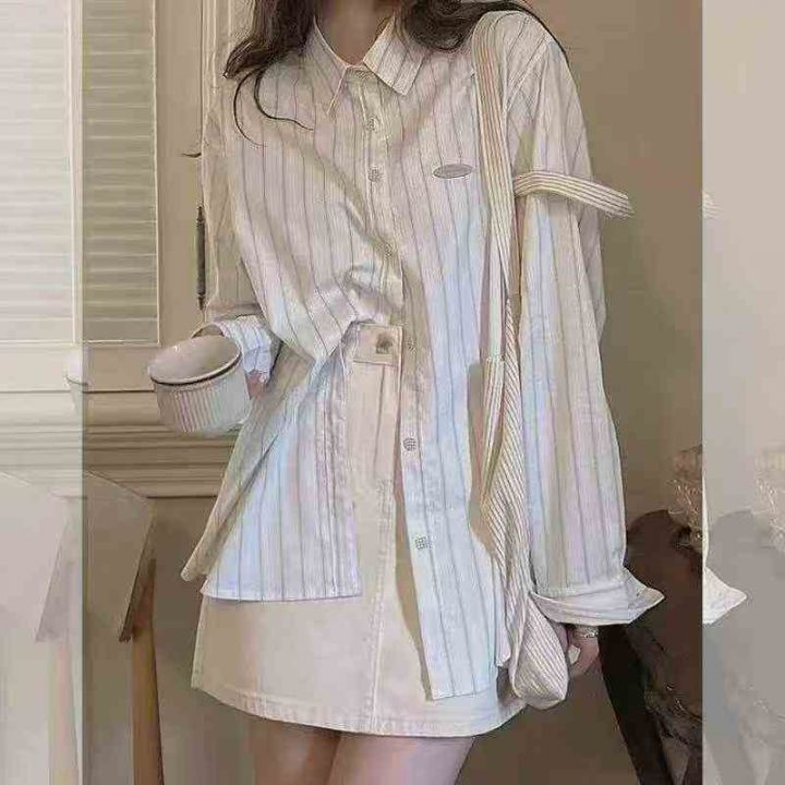 春秋新款叠穿大码宽松休闲显瘦长袖衬衫女法式衬衣设计感小众条纹上衣 独立包装 码数1-4码 数量382件 全清5.9