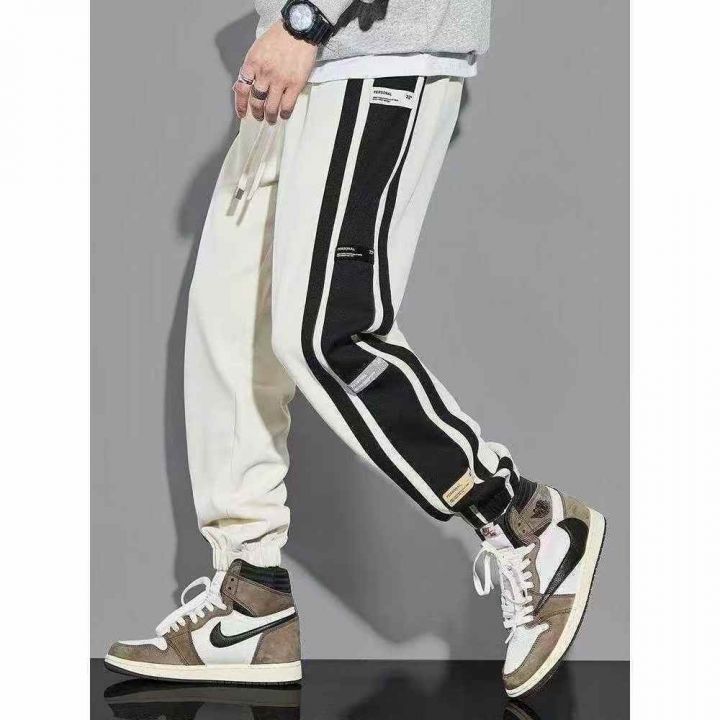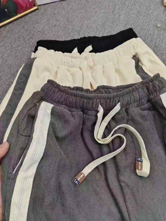 侧边条纹灯芯绒男冬季加绒加厚潮牌宽松束脚裤子,整款三色,独立包装M-3XL,800件左右,9.5清,分+1