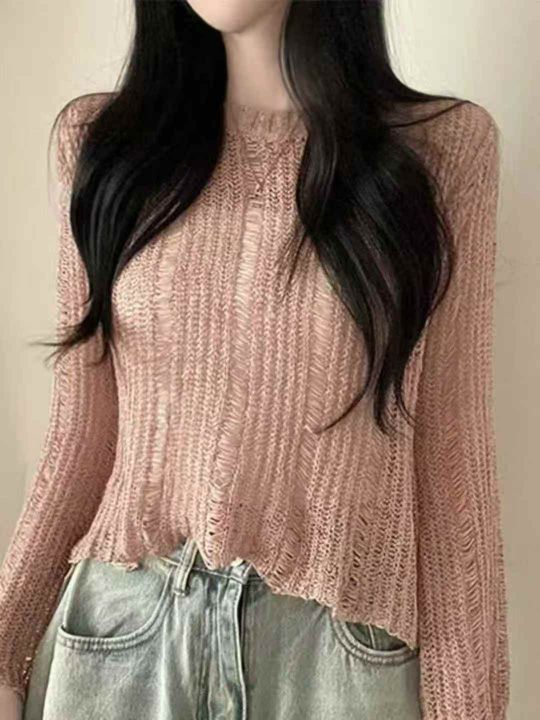新款镂空上衣配吊带的小外搭韩版纯色宽松设计感长袖针织衫潮,整款4色,独立包装,货品干净,均码90穿到140斤,800件左右,6.8清,分货加1